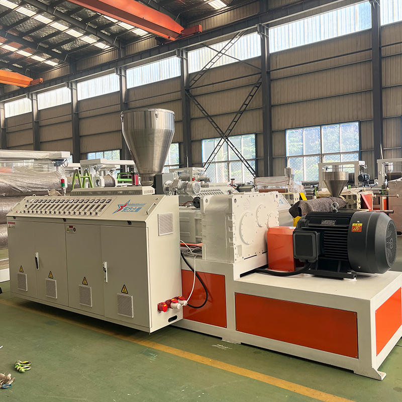 Wytłaczarki stożkowe dwuślimakowe, wyposażone w różne specyfikacje form i urządzeń pomocniczych produkowanych przez firmęQingdao Eaststar Plastic Machinery Co., Ltd.,może bezpośrednio przetwarzać proszek PVC na produkty z tworzyw sztucznych, takie jak rury, arkusze i profile.