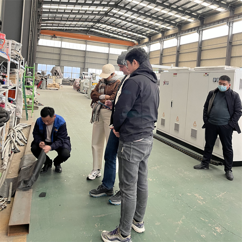 Ta zima jest wyjątkowo mroźna. Za oknem sypią się płatki śniegu, a do naszego miasta stopniowo wdziera się dokuczliwy wiatr. Temperatury spadły do zera, ale to nie ostudziło naszego zapału do pracy. TheSprzęt z membraną wodoodporną SBSprzeszło testy akceptacyjne i wszyscy są zajęci pakowaniem i wysyłką. Wodoodporna membrana SBS stosowana jest głównie do hydroizolacji dachów. Typowe materiały na membrany wodoodporne obejmują modyfikowany bitum i TPE. Nasz sprzęt może produkować zarówno TPE, jak i SBS. Hydroizolacja podziemna stosowana jest głównie w piwnicach, garażach podziemnych, tunelach metra, projektach obrony cywilnej i innych konstrukcjach podziemnych. Na środowisko podziemne stale wpływają wody gruntowe i wilgoć; wodoodporne membrany mogą zapobiegać przenikaniu wód gruntowych, zapobiegać zawilgoceniu i korozji strukturalnej oraz zapewniać suchość i bezpieczeństwo konstrukcyjne przestrzeni podziemnych.Sprzęt do wytłaczania membran wodoodpornych SBSjest jednym z kluczowych głównych produktów naszej fabryki. Kompletny proces produkcyjny obejmuje wytłaczarkę jednoślimakową topiącą tworzywo sztuczne, hydrauliczny zmieniacz sit filtrujący materiał, formę do wstępnego kształtowania półfabrykatu z tworzywa sztucznego, trójwalcowy kalandr do chłodzenia i kształtowania, regał chłodniczy do chłodzenia i zestalania produktu, maszynę trakcyjną współpracującą z wytłaczarką w celu zapewnienia stabilnej produkcji oraz maszynę nawijającą dokonującą nawijania produktu zgodnie ze specyfikacją i długością. MamySprzęt do wytłaczania membran wodoodpornych SBSw magazynie i oferujemy usługi testowania materiałów. Zapraszamy do zamawiania naszego sprzętu.