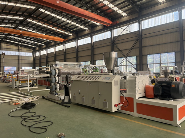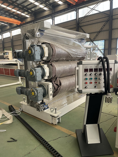 Zasada działania: Premiks PVC jest podawany do wytłaczarki, podgrzewany i ścinany za pomocą ślimaka, a następnie wytłaczany przez płaską matrycę w arkusz. Arkusz jest następnie schładzany, utwardzany i cięty.