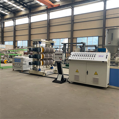 Wysuszone cząstki PS transportowane są do leja zasypowego wytłaczarki poprzez automatyczne urządzenie podające. Ślimak wytłaczarki stopniowo topi stałe cząstki PS w jednolity stop poprzez obrót i ogrzewanie zewnętrzne. Stop jest wypychany do matrycy T (płaski kanał przepływowy) w celu wstępnego określenia szerokości arkusza. Stopiona folia trafia do kalandra trójwalcowego, gdzie szybko ulega zestaleniu i uformowaniu. Uformowany arkusz jest ciągnięty z jednakową prędkością przez maszynę trakcyjną, a zadziory są usuwane przez maszynę do przycinania. Na koniec jest zwijany w zwykłą cewkę za pomocą nawijarki.